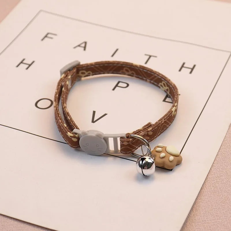 Pet Collar with Bell – Cartoon Footprint Adjustable Collar
